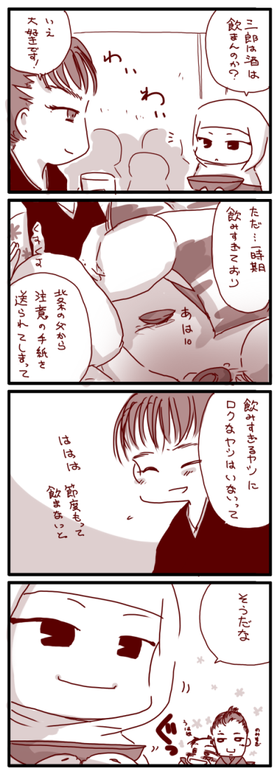 [漫画]三郎とお酒 2014年10月24日 創戦 謙信さんと。 0 http://fuyuiroemaki.edoblog.net/%E5%89%B5%E6%88%A6%E3%80%80%E8%AC%99%E4%BF%A1%E3%81%95%E3%82%93%E3%81%A8%E3%80%82/-%E6%BC%AB%E7%94%BB-%E4%B8%89%E9%83%8E%E3%81%A8%E3%81%8A%E9%85%92[漫画]三郎とお酒 漫画:上杉謙信 上杉景虎(三郎) 北条さんが武田人質時代(?)の三郎さんに送ったお手紙見て。頭巾取った時。ハゲじゃない。綾姫と基本同じ顔。 [0回]PR