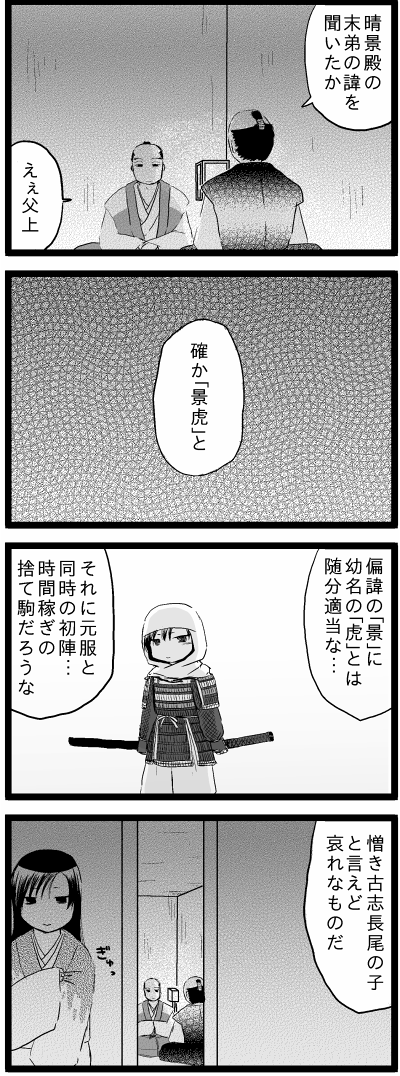 [漫画]綾さまと虎千代ちゃんの名前1 2016年11月12日 創戦 謙信さんと。 0 http://fuyuiroemaki.edoblog.net/%E5%89%B5%E6%88%A6%E3%80%80%E8%AC%99%E4%BF%A1%E3%81%95%E3%82%93%E3%81%A8%E3%80%82/-%E6%BC%AB%E7%94%BB-%E7%B6%BE%E3%81%95%E3%81%BE%E3%81%A8%E8%99%8E%E5%8D%83%E4%BB%A3%E3%81%A1%E3%82%83%E3%82%93%E3%81%AE%E5%90%8D%E5%89%8D%EF%BC%91[漫画]綾さまと虎千代ちゃんの名前1 長尾政景 綾姫 上杉謙信(長尾景虎・虎千代) コメディです。拍手、拍手コメントありがとうございます。とてもうれしいです( ´▽`)謙信もなにかと回りに振り回されて苦労してますよねぇ。謙信も回りを振り回してるとも思うけど。私もまだまだ知らないことばかりなのですが、漫画書いてると、改めて気が付いたりとか、更なる疑問が出てきたりして面白いです。 [3回]PR