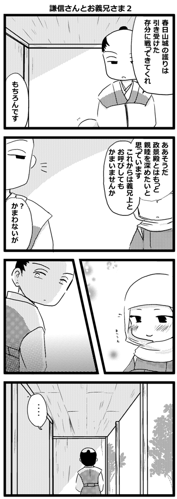 [漫画]謙信さんとお義兄さま2 2014年12月31日 創戦 謙信さんと。 0 http://fuyuiroemaki.edoblog.net/%E5%89%B5%E6%88%A6%E3%80%80%E8%AC%99%E4%BF%A1%E3%81%95%E3%82%93%E3%81%A8%E3%80%82/-%E6%BC%AB%E7%94%BB-%E8%AC%99%E4%BF%A1%E3%81%95%E3%82%93%E3%81%A8%E3%81%8A%E7%BE%A9%E5%85%84%E3%81%95%E3%81%BE%EF%BC%92[漫画]謙信さんとお義兄さま2 上杉謙信 長尾政景 2014/12/31 大みそかです。皆様、よい年末を。来年もよろしくお願いします。 [0回]PR