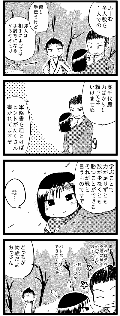 [漫画]軍略って大事だよって話 2015年11月30日 創戦 謙信さんと。 0 http://fuyuiroemaki.edoblog.net/%E5%89%B5%E6%88%A6%E3%80%80%E8%AC%99%E4%BF%A1%E3%81%95%E3%82%93%E3%81%A8%E3%80%82/-%E6%BC%AB%E7%94%BB-%E8%BB%8D%E7%95%A5%E3%81%A3%E3%81%A6%E5%A4%A7%E4%BA%8B%E3%81%A0%E3%82%88%E3%81%A3%E3%81%A6%E8%A9%B1[漫画]軍略って大事だよって話 上杉謙信(虎千代) 鬼小島弥太郎 金津新兵衛 金津さんも猛将系。 弥太郎まだ護衛見習いくらい。 [0回]PR