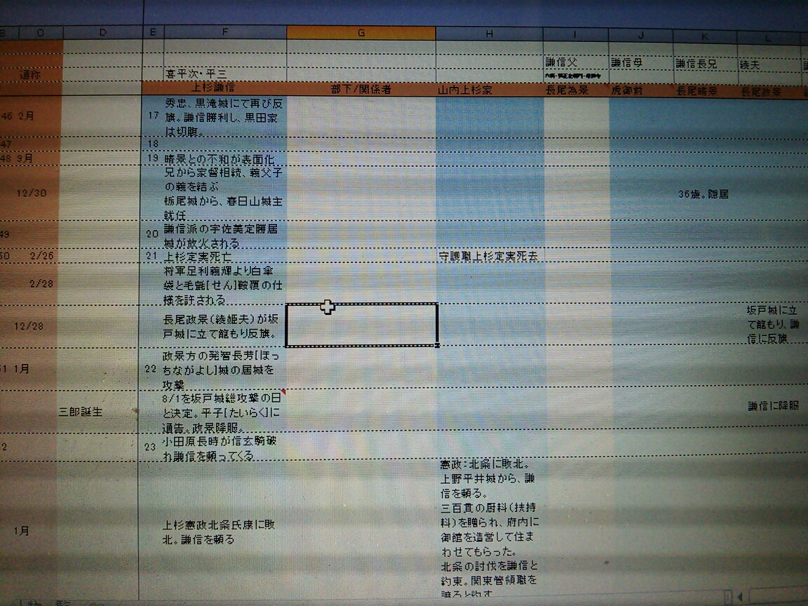 こんなのとか作ったるんだけど 2015年10月01日 雑記 0 http://fuyuiroemaki.edoblog.net/%E9%9B%91%E8%A8%98/%E3%81%93%E3%82%93%E3%81%AA%E3%81%AE%E3%81%A8%E3%81%8B%E4%BD%9C%E3%81%A3%E3%81%9F%E3%82%8B%E3%82%93%E3%81%A0%E3%81%91%E3%81%A9こんなのとか作ったるんだけど 資料まとめて、 謙信年表~周辺の人と大名もちょっとあるよ!~を以前に作っていたのですが、年代あれ違う…違うと言うか、この資料とこの資料は異なるのか。うーん。矛盾をどうするかとか唸ったりしてます。そーゆーの調べたり考えたりも楽しいのだけどね。なやみなやみ。 [0回]
